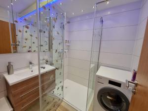 Prostorný apartmán zahrnuje obývací pokoj, dvě samostatné ložnice s celkem šesti lůžky a jednu koupelnu vybavenou sprchou, bezplatnými toaletními potřebami včetně šamponu a tělového mýdla i fénem. Kompletně vybavená kuchyň obsahuje troubu, varnou desku, lednici, myčku nádobí, mikrovlnnou troubu, toustovač, kávovar i rychlovarnou konvici spolu se vším potřebným nádobím pro přípravu jídel. V apartmánu jsou k dispozici také pračka, sušička na prádlo a žehlička s žehlícím prknem, hosté najdou syntetické polštáře bez peří stejně jako ručníky a povlečení. K posezení slouží rozkládací pohovky i pracovní stoly.